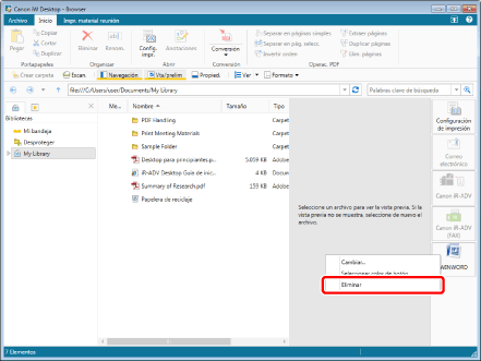 O bien seleccione el menú [Archivo] > [Configuración de la barra de salida] > (nombre de aplicación) > [Eliminar].