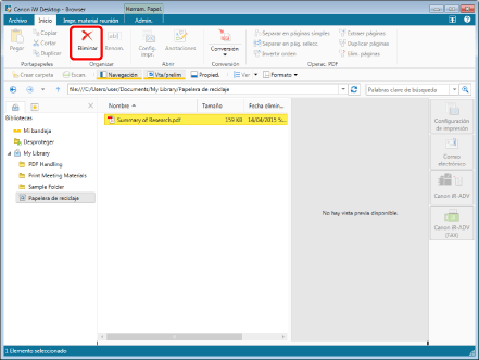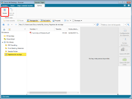 La papelera de reciclaje no puede usarse para una Biblioteca de Document Server o una Biblioteca de SharePoint Server si usted no tiene permisos de edición o superiores.