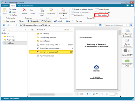Si el documento original es un PDF con Reader Extensions, esta función se eliminará del documento PDF original después de la supresión.