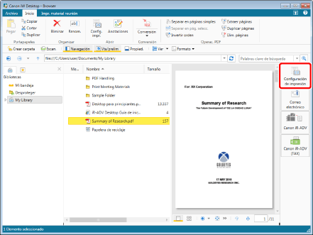 Si selecciona una carpeta o varios documentos, aparece el cuadro de diálogo [Configuración del orden de varios documentos]. Para obtener más información, consulte: