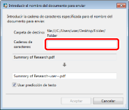 Mueva el cuadro de diálogo [Introducir el nombre del documento para enviar].