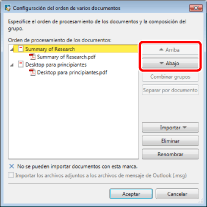 Para obtener más información sobre el cuadro de diálogo [Configuración del orden de varios documentos], consulte: