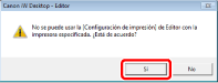 Cuando los documentos seleccionados contengan un documento IWB, aparecerá un mensaje de confirmación para informarle de que no se reflejará ningún ajuste de impresión existente para ese documento IWB. En este caso, haga clic en [Aceptar]. Si selecciona la casilla de verificación [No mostrar este mensaje de nuevo], este mensaje no aparecerá la próxima vez.