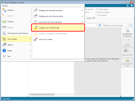 Solo se puede registrar una carpeta como carpeta de recepción (carpeta de automatización) para transferir los documentos a Mi bandeja. Sin embargo, la carpeta de destino no aparece en el cuadro de diálogo [Lista de Hot Folders].