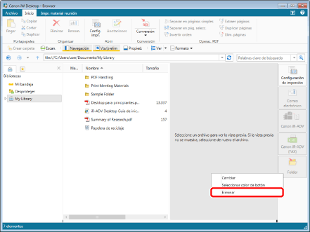 O bien seleccione el menú [Archivo] > [Herramientas] > [Configuración de la barra de salida] > (nombre de carpeta) > [Eliminar].