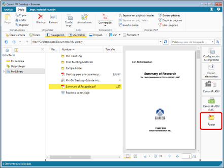Cuando se ha especificado [Mover] para [Operaciones de documentos] en los ajustes del botón de salida de bandeja de destino, el documento enviado se elimina de Desktop. Para conservar el documento enviado en Desktop, especifique [Copiar]. Para obtener más información sobre cómo configurar los botones de salida de bandeja de destino, consulte: