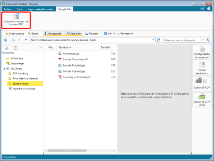 Los documentos PDF (*.pdf) y los documentos IWB (*.iwb) se pueden convertir.