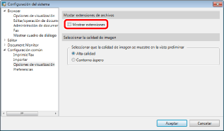Cuando se ha definido la ocultación de las extensiones, aunque añada una extensión al final del nombre del documento y lo guarde, el texto añadido se considerará como parte del nombre del documento. Sin embargo, si el documento no tiene una extensión, el texto añadido se considerará una extensión.