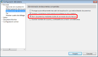 Seleccione la casilla de verificación [Abrir documentos mediante doble clic en modo de sólo lectura].