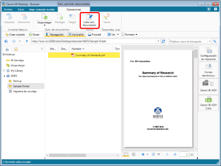 Cuando seleccione una Biblioteca de Document Server o una Biblioteca de SharePoint Server con la cual no se haya establecido conexión, la biblioteca debe estar conectada. Para obtener más información sobre cómo conectarse, consulte: