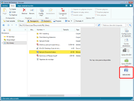 En la Ventana de navegación puede seleccionar varios documentos o una carpeta.
