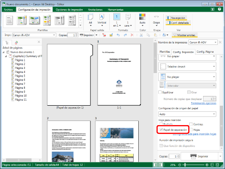 Seleccione [Insertar papel de separación y luego hojas] o [Insertar hojas y luego papel de separación].