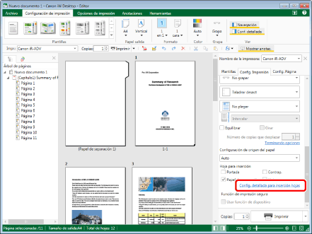 (Para insertar) en la cinta y seleccione [Configuración detallada para inserción de hojas].