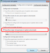 Puede configurar los ajustes de origen del papel para el capítulo especificado de forma distinta que para el documento entero.
