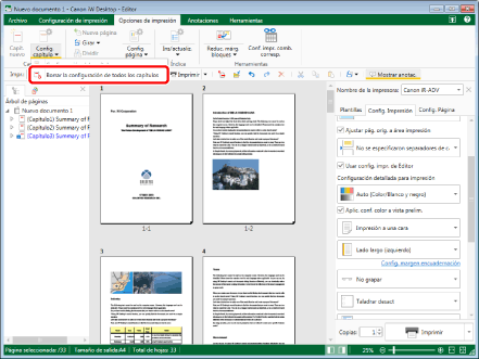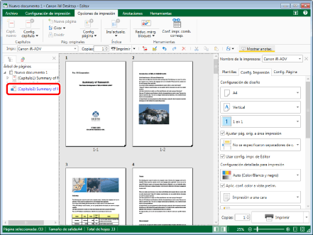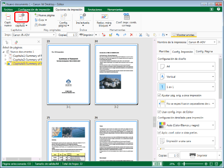 Para obtener más información acerca de cómo configurar el tamaño del papel de salida por capítulos, consulte la siguiente sección.