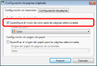 Si la impresora Canon seleccionada en [Impr.] no es compatible con la impresión en color, no se podrá especificar el modo de color por páginas.