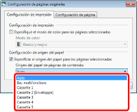 Para obtener más información acerca de cómo configurar el origen del papel para todo el documento, consulte la siguiente sección.