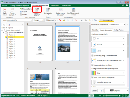 (Config. página) en la cinta y seleccione [Configuración de página original]