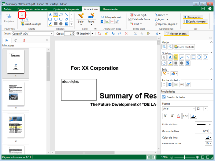 Para obtener más información acerca de cómo copiar el contenido del cuadro de texto, consulte la siguiente sección.