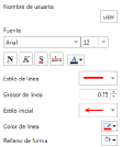 (Conf. nbre. usuario) (Fte.) (Tam. fte.) (Negr) (Curs) (Subrayar) (Tachar) (Color fte.) (Estilo de línea) (Grosor de línea) (Inicio) (Color de línea) (Rell)Si los comandos no aparecen en la cinta de Desktop Editor, siga uno de los pasos indicados a continuación para visualizarlos.