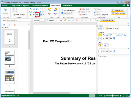 Esta operación también puede realizarse con los botones de herramienta de la barra de herramientas. Si no se muestran botones de herramienta en la barra de herramientas de Desktop Editor, consulte la siguiente información para visualizarlos.