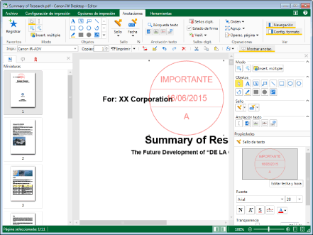 Puede insertar los sellos de texto registrados recientemente, así como los sellos de texto que se registran automáticamente durante la instalación. Para obtener más información, consulte: