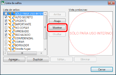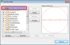 Aparecerá el cuadro de diálogo [Lista de sellos].