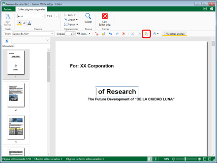 Los objetos cortados en el Modo de edición de páginas originales solo se pueden pegar en el documento desde el que se cortaron en el Modo de edición de páginas originales. Si los objetos cortados son objetos de texto, sus cadenas también se pueden pegar en documentos creados en otra aplicación. En este caso, se descarta la información de atributo de las cadenas.