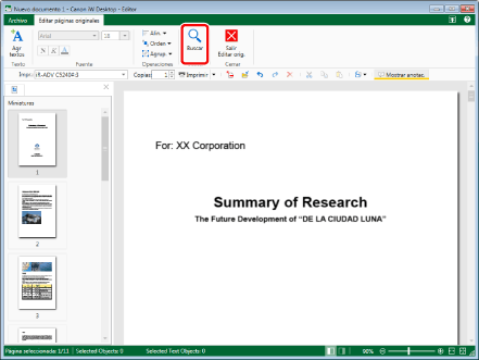 En el Modo de edición de páginas originales de Desktop Editor, puede buscar cadenas.