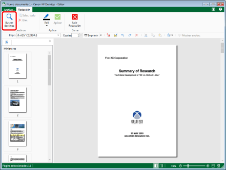 Puede usar Desktop Editor para eliminar parcialmente datos originales. Esta función se denomina "redacción". La redacción se realiza utilizando el Modo de redacción de Desktop Editor.