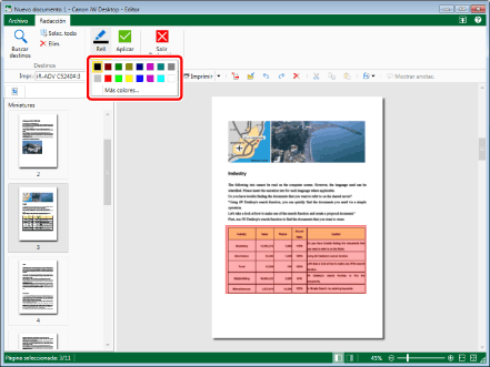 Si desea utilizar un color que no esté disponible en la lista de colores, seleccione [Más colores] para configurarlo en el cuadro de diálogo [Color].