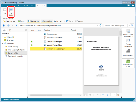 Si se selecciona la casilla de verificación [Marcar documentos no leídos como leídos automáticamente al mostrarse], los documentos no leídos se marcan automáticamente como leídos cuando se realiza una operación en ellos (apertura, impresión, envío por fax, creación de un correo electrónico, etc.).