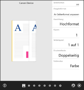 Beim Drucken über Store-Apps wird der folgende Bildschirm mit den Druckeinstellungen angezeigt.