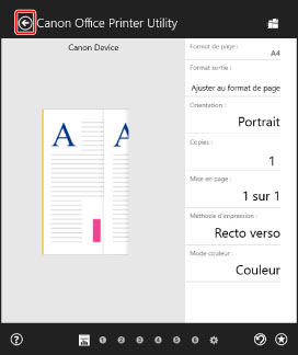 Si les fonctions que vous souhaitez utiliser ne figurent pas dans l'écran des paramètres d'impression d'une application du Store, modifiez les paramètres par défaut pour pouvoir les utiliser. Pour configurer les paramètres par défaut, affichez l'écran des paramètres d'impression à partir de l'icône correspondant au périphérique dans [Périphériques et imprimantes].