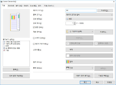 이 드라이버를 통해 Windows 스토어 앱과 데스크톱 앱을 지원하는 드라이버의 인쇄 설정 화면을 표시하고, Canon 디바이스의 인쇄 기능을 사용할 수 있습니다.