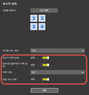 포스터 인쇄 설정 및 출력 예
