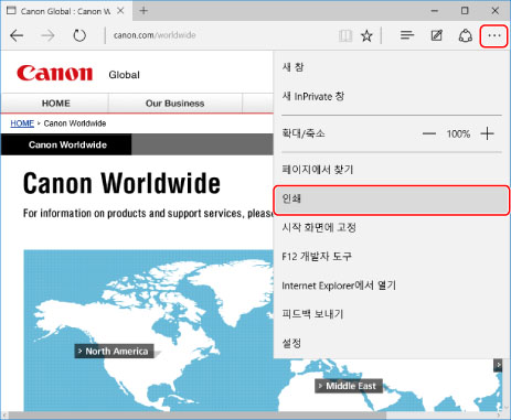 앱 메뉴에서 [인쇄]를 선택합니다.