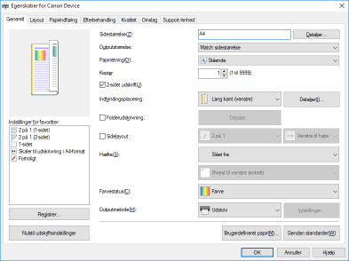 Denne driver gør det muligt at få vist skærmbilledet med udskriftsindstillinger for drivere, der understøtter Windows Store-apps og desktop-apps, og som bruger udskrivningsfunktionerne i Canon-enheder.