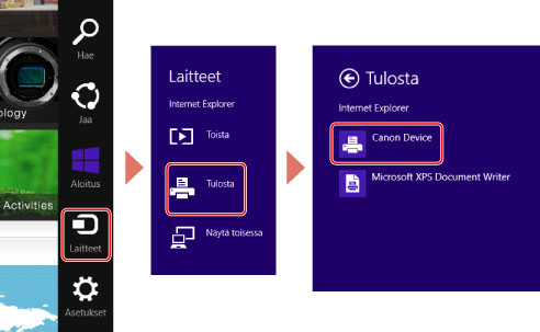 Kaupan sovelluksesta tulostaminen Windows 8.1/Server 2012 R2 -versiossa