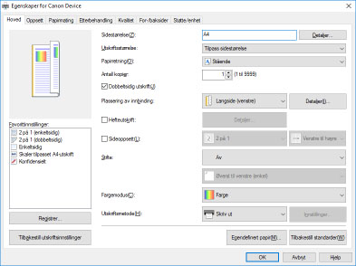MERKFor detaljer om utskriftsinnstillinger fra skrivebordsapper, kan du lese bruksanvisningen for V4 skriverdriver.