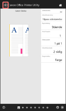 Dersom noen av funksjonene du vil bruke ikke vises i utskriftsinnstillingens skjermbilde fra en Store-apper, kan de brukes dersom du endrer standardinnstillingene. Du kan konfigurere standardinnstillingene ved å vise skjermbildet for utskriftsinnstillingene fra enhetens ikon i [Enheter og skrivere].