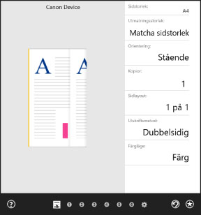 Visar det sidformat som ställts in i appen eller det sidformat som ställts in i [Huvud-] fliken > [Sidstorlek].
