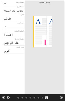 يعرض حجم الصفحة المضبوط في التطبيق أو حجم الصفحة المضبوط في الورقة [رئيسي] > [حجم الصفحة].
