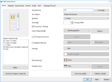 Skrin tetapan cetakan berikut dipaparkan apabila anda mencetak daripada aplikasi desktop.