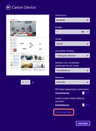 Inprimatze-pantailan, sakatu [Inprimatu].