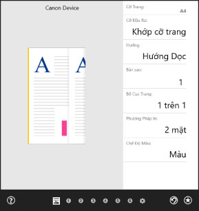 Màn hình cài đặt in sau được hiển thị khi bạn in từ ứng dụng từ Store.