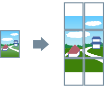 Bạn có thể phóng to dữ liệu in của một trang và in nó trên nhiều trang giấy. Khi các tờ đầu ra được ghép với nhau, chúng tạo thành bản in lớn như áp phích.