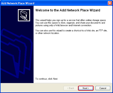 Select [My Network] from the [Start] menu, and then click [Network Tasks] > [Add a network place] in the displayed screen.