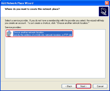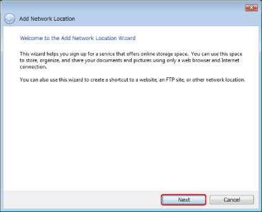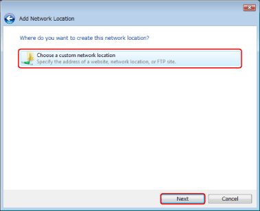 For Windows Vista, right-click [Computer] in Windows Explorer and then select [Add a network location].