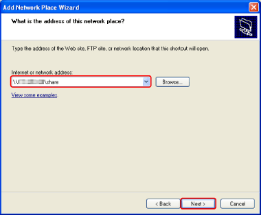Specify a folder in Advanced Space in [Internet or network address] and then click [Next].